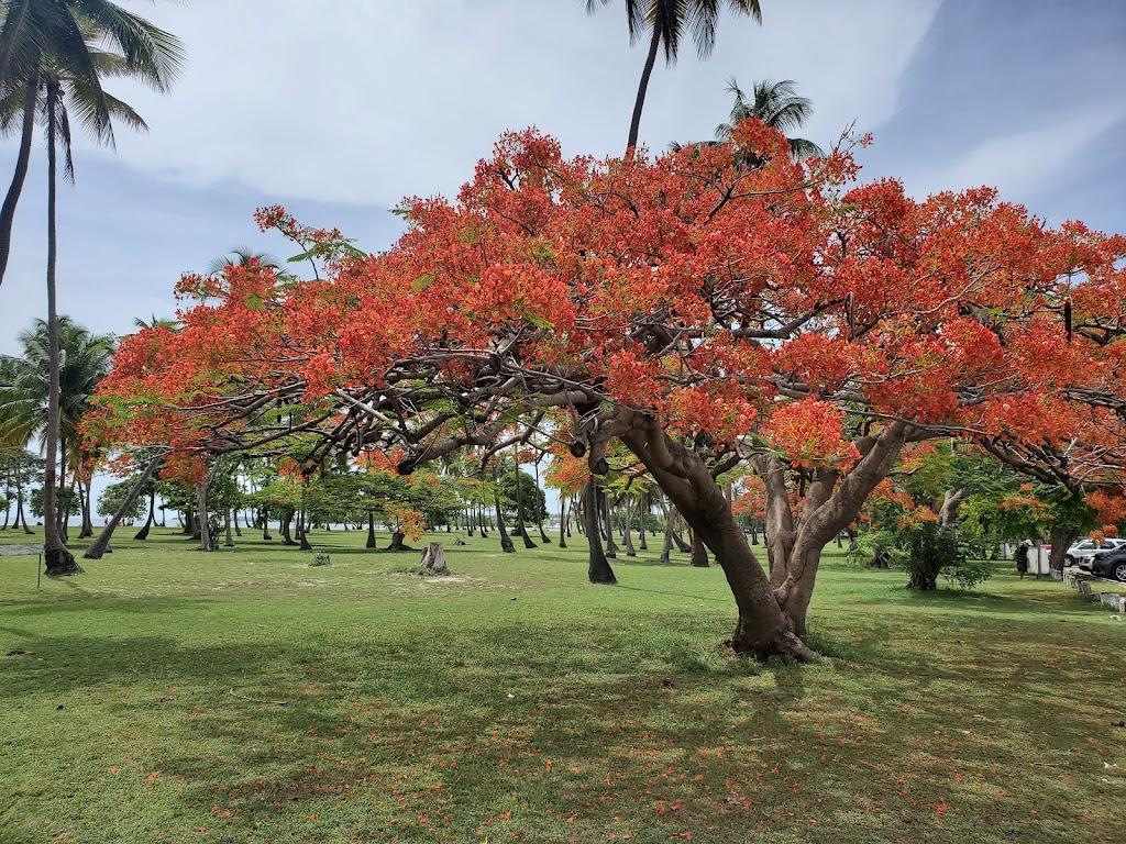 The beach has over a mile of golden sand and the calm waters of the Caribbean Sea. It has coconut trees for shade, plenty of parking, and a safe area.