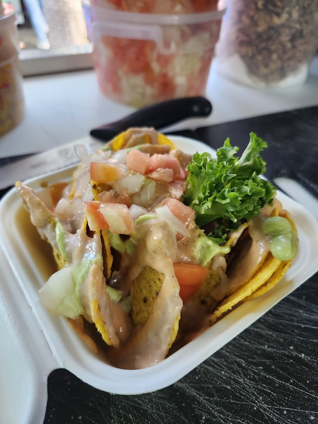 9 months agoReally good vegan street food! As a vegan traveling it was nice to find a place with actual vegan protein options, instead of just vegetables on bread or pasta with vegetables. They do have the option to add meat for non-vegans. I ordered the nachos and the garden burrito and the portions were HUGE! It was more than enough to split with my husband and we were full. The man serving from the food truck was very sweet and made sure we understood what we were ordering even though we speak little to no Spanish. They are cash only but very inexpensive! Definitely a good value, and nice to experience Puerto Rican flavors in fully vegan dishes. Highly recommend!